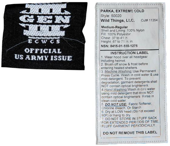 また、近年はミリタリーウェアのサンプル作成にも着手し、ECWCS(拡張式寒冷地被服システム)のサプライヤーに認定。